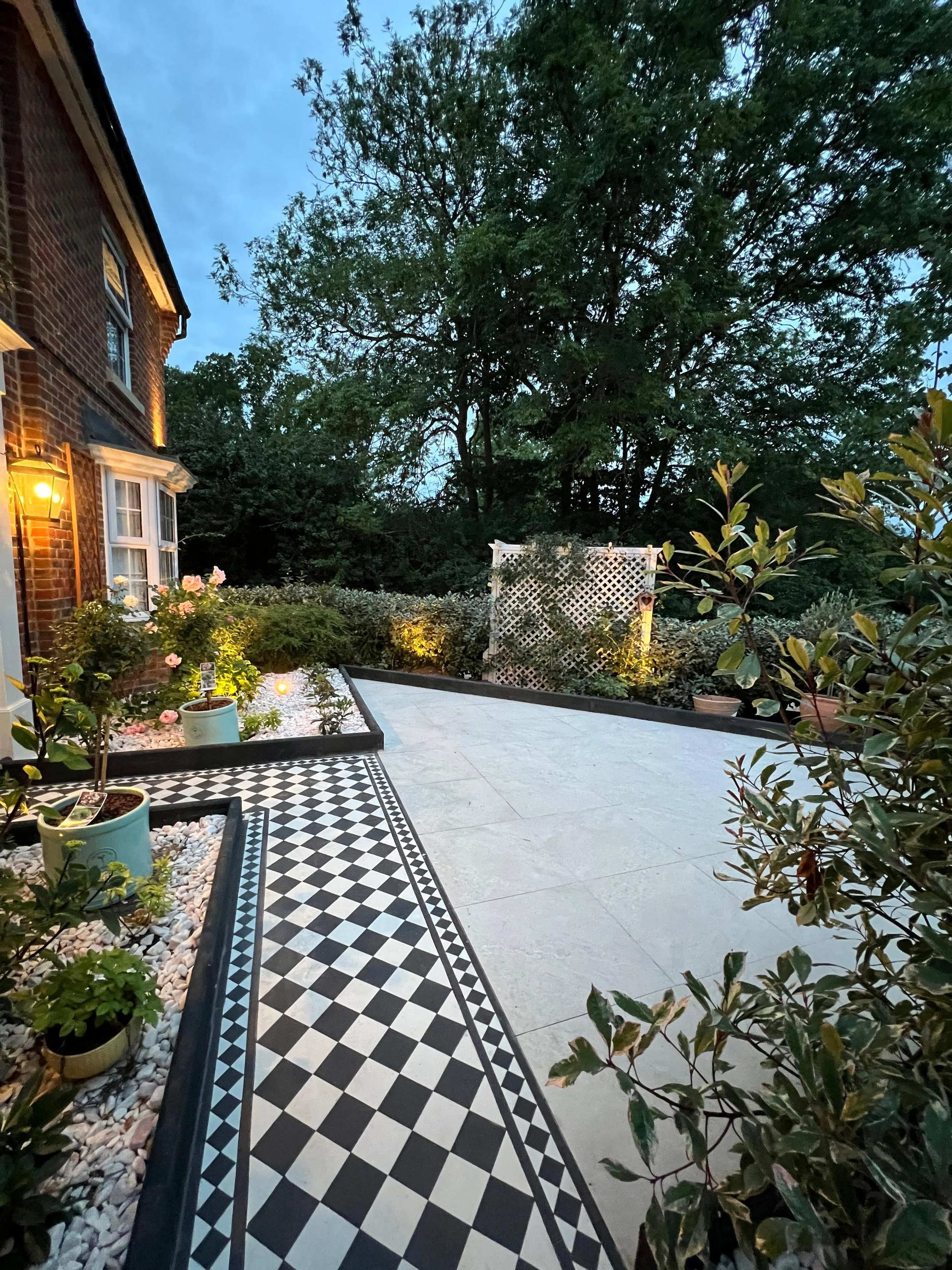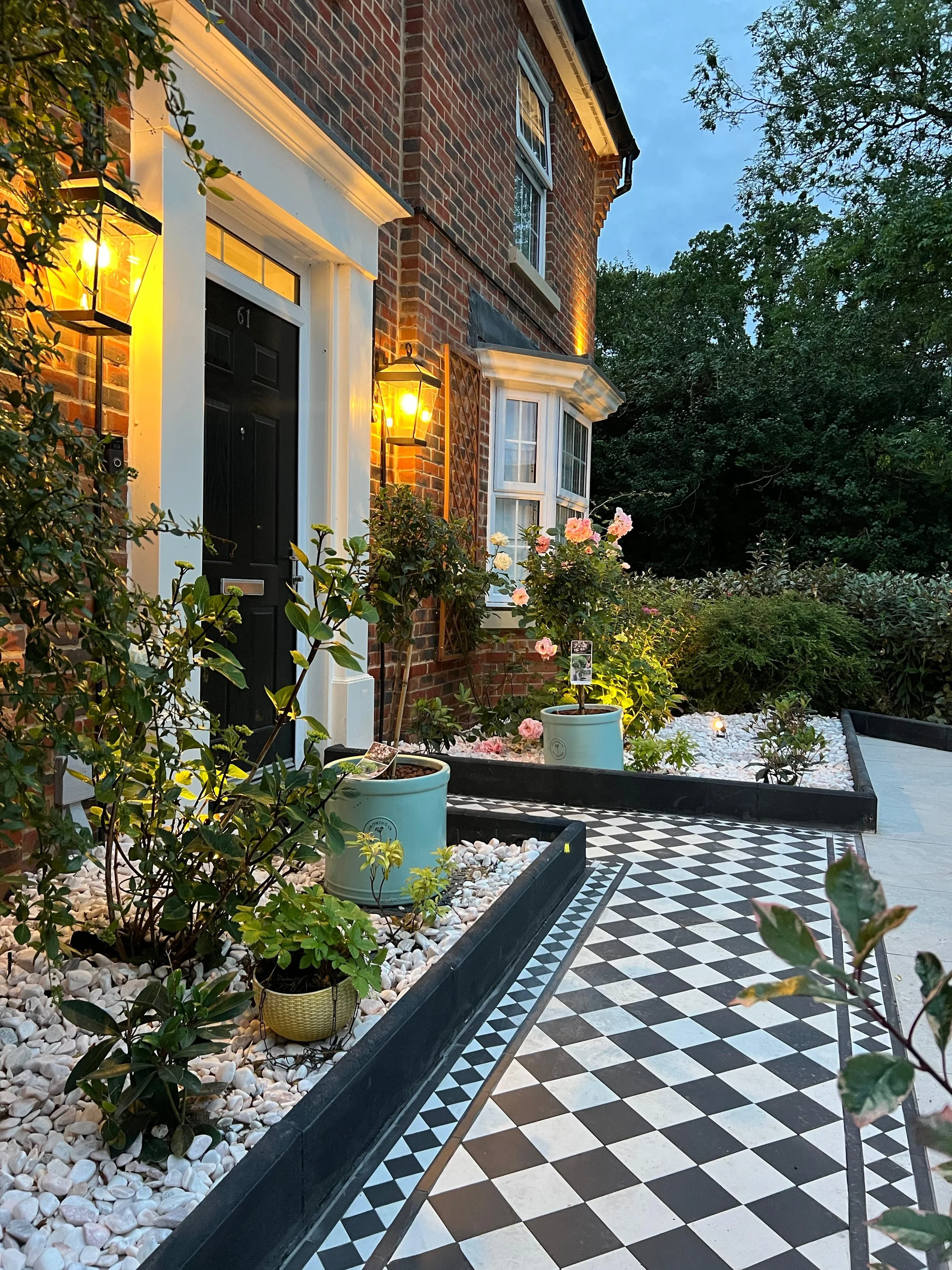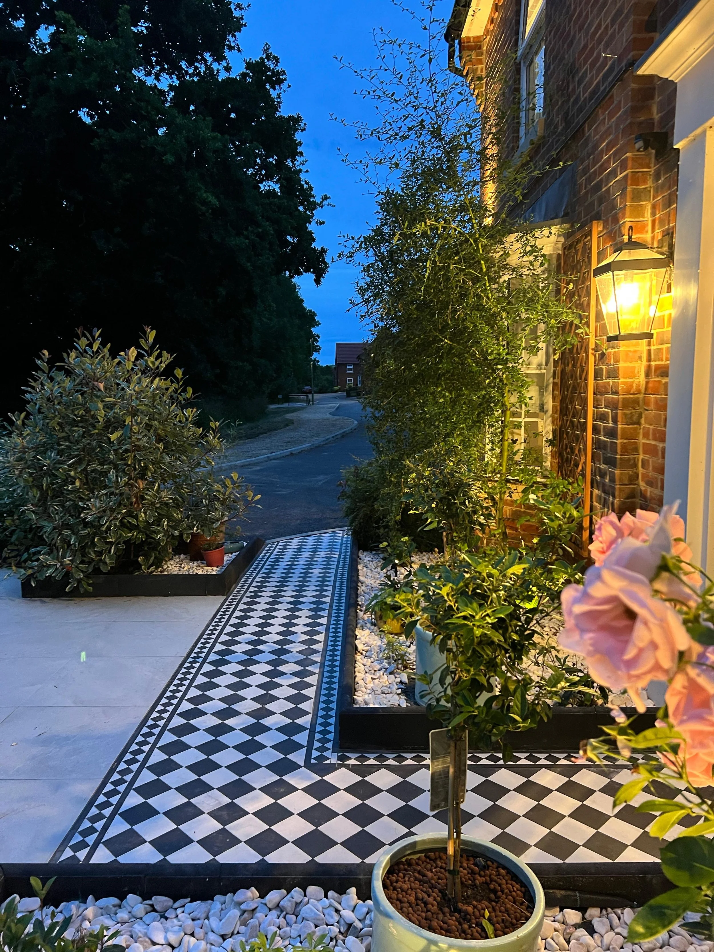The result is a front garden that not only enhances the kerb appeal but also blends functionality with elegance. Every detail—from the sharp tile layout to the ambient evening glow—was considered to create a striking entrance that the homeowners can enjoy for years to come.