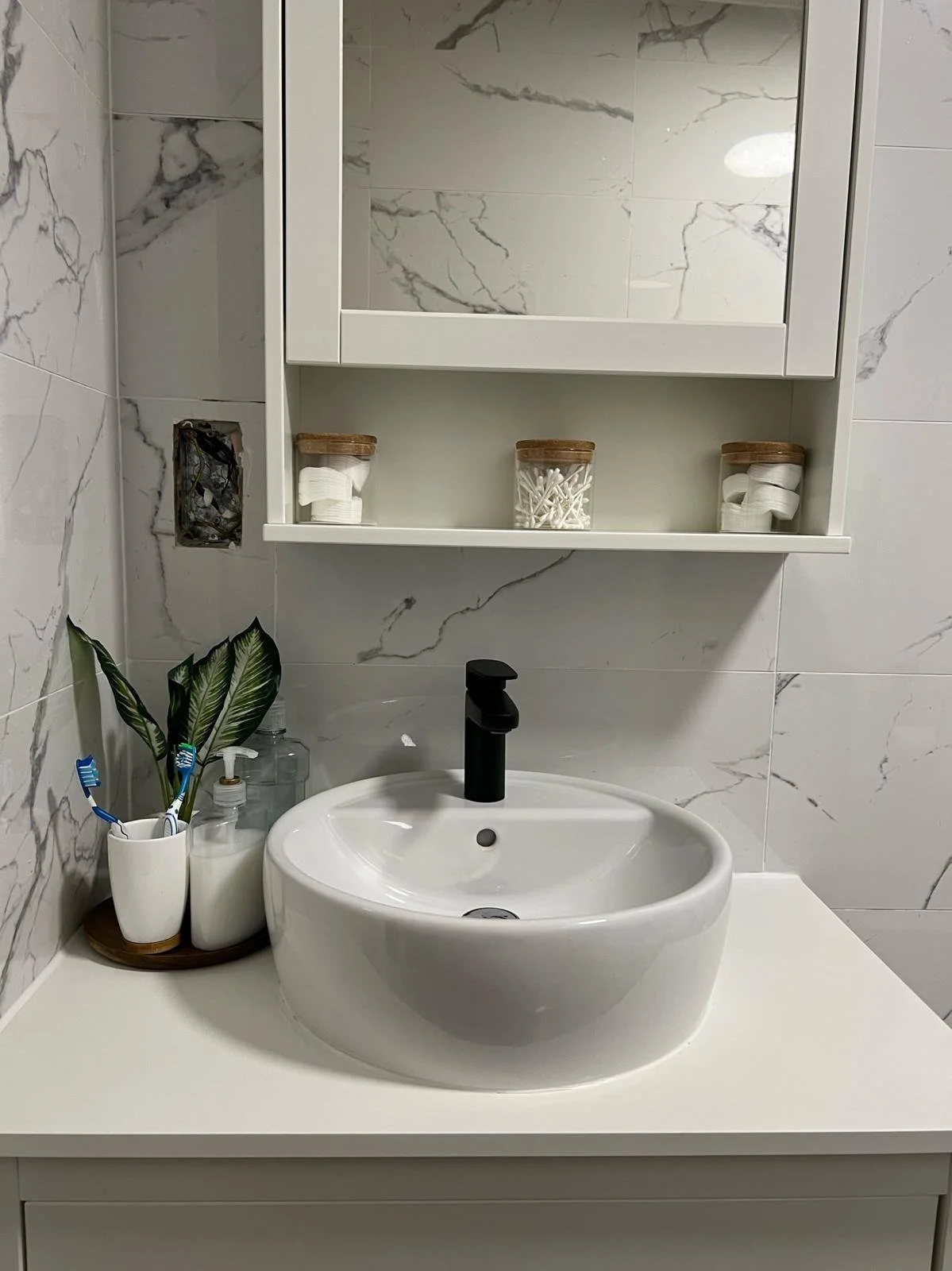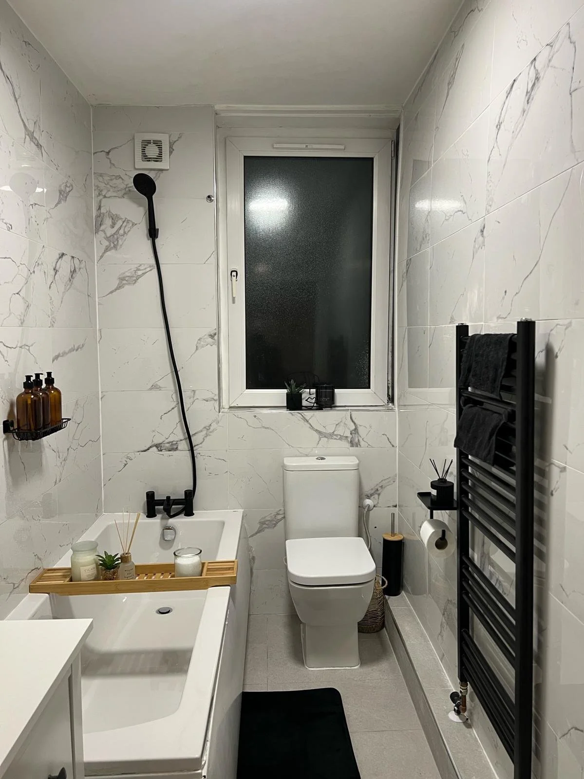 Installation of a brand-new bathroom with contemporary fixtures and finishes