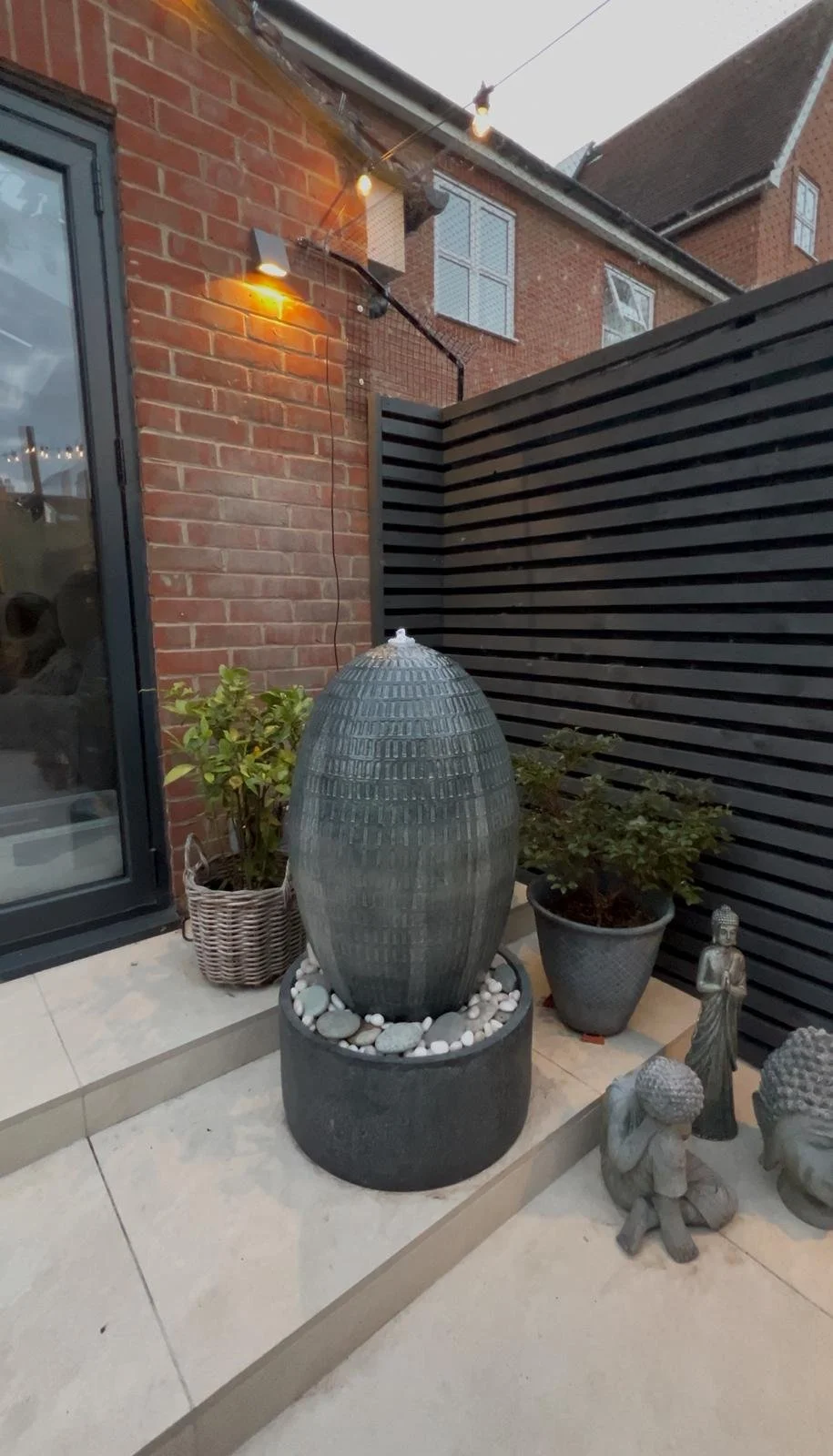 Feature water fountain adding calm and movement to the space