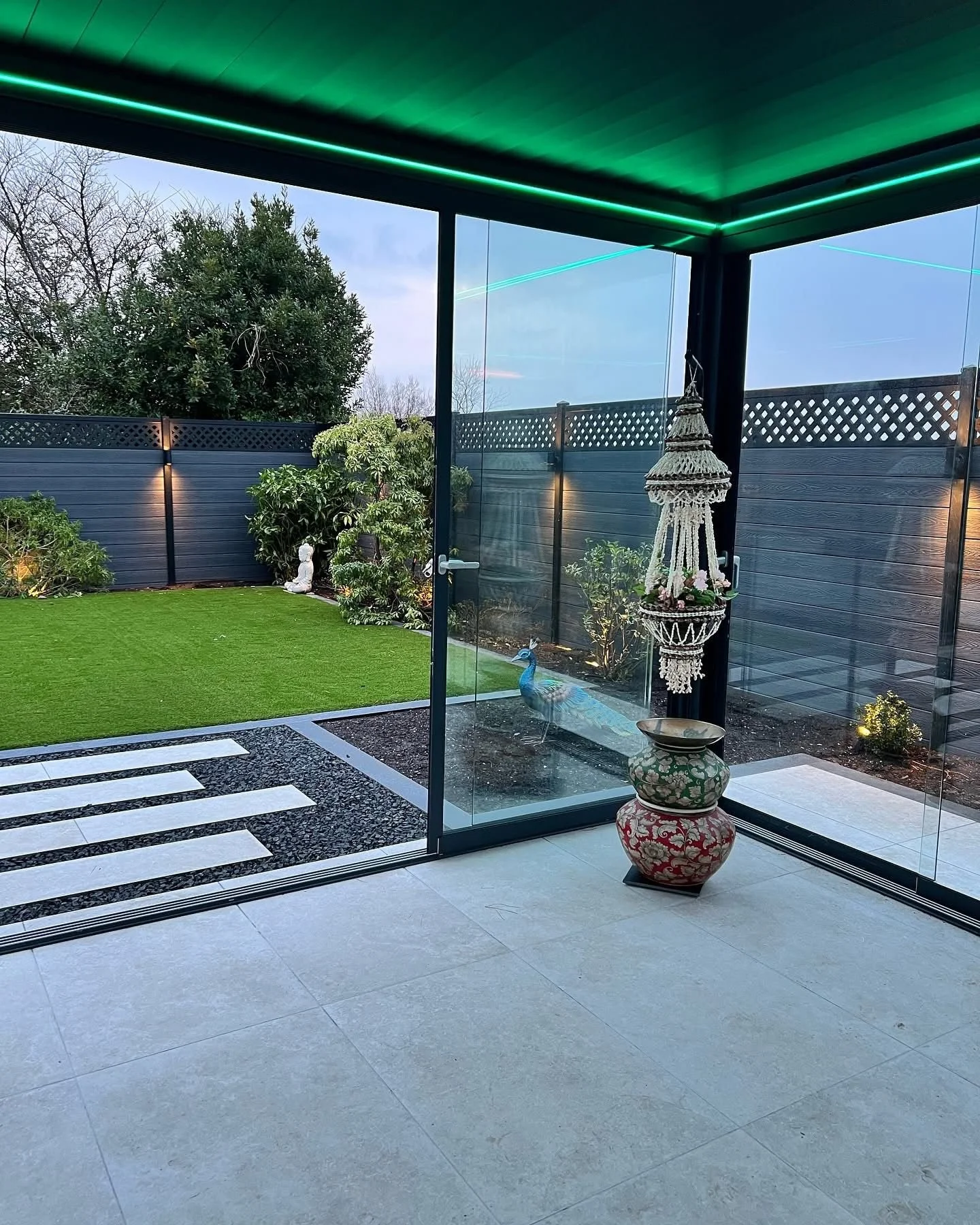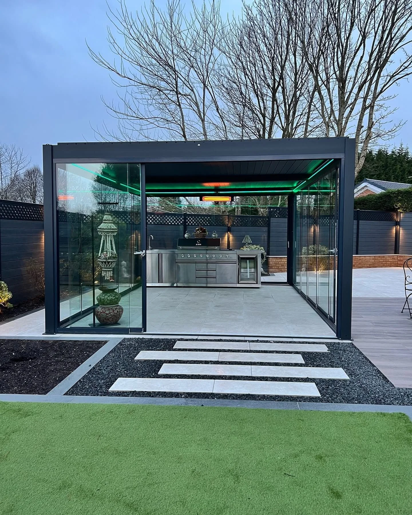 Aluminium pergola with glass panels for shade and architectural style