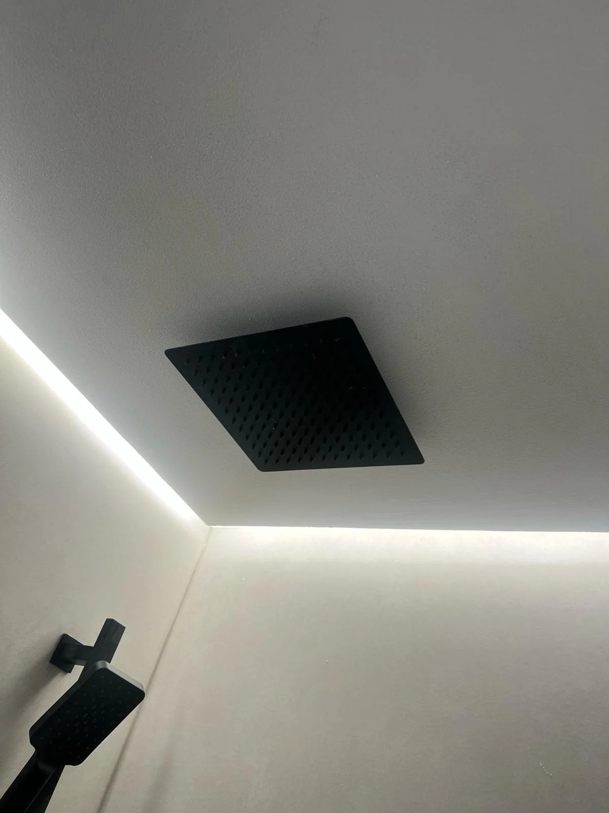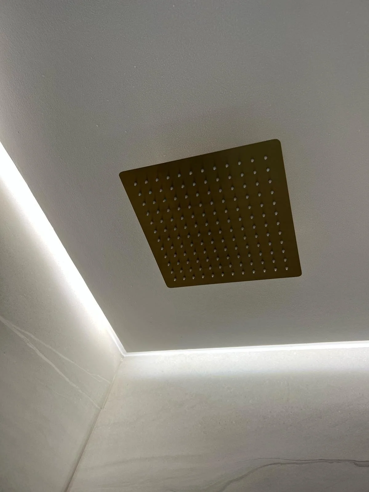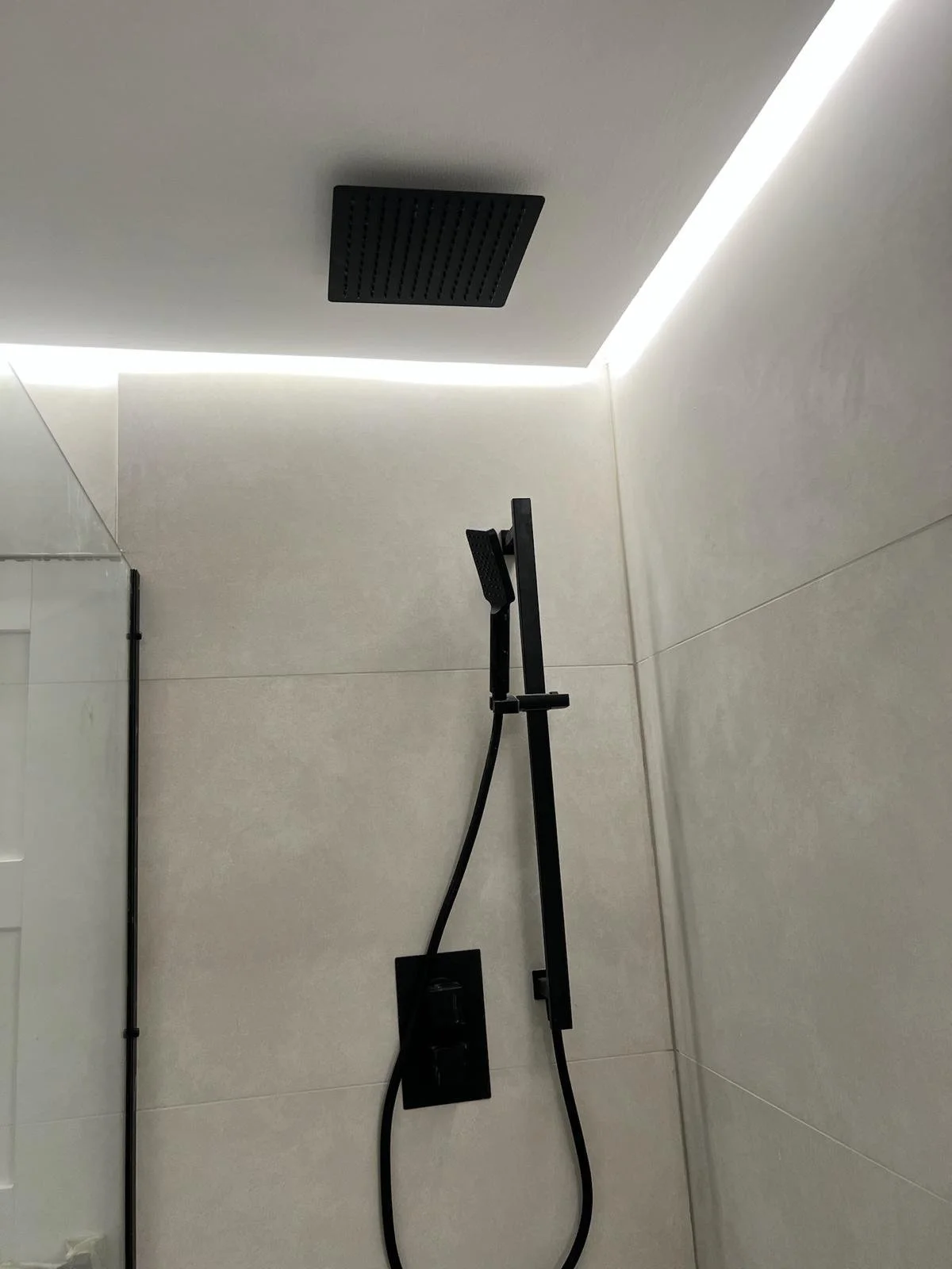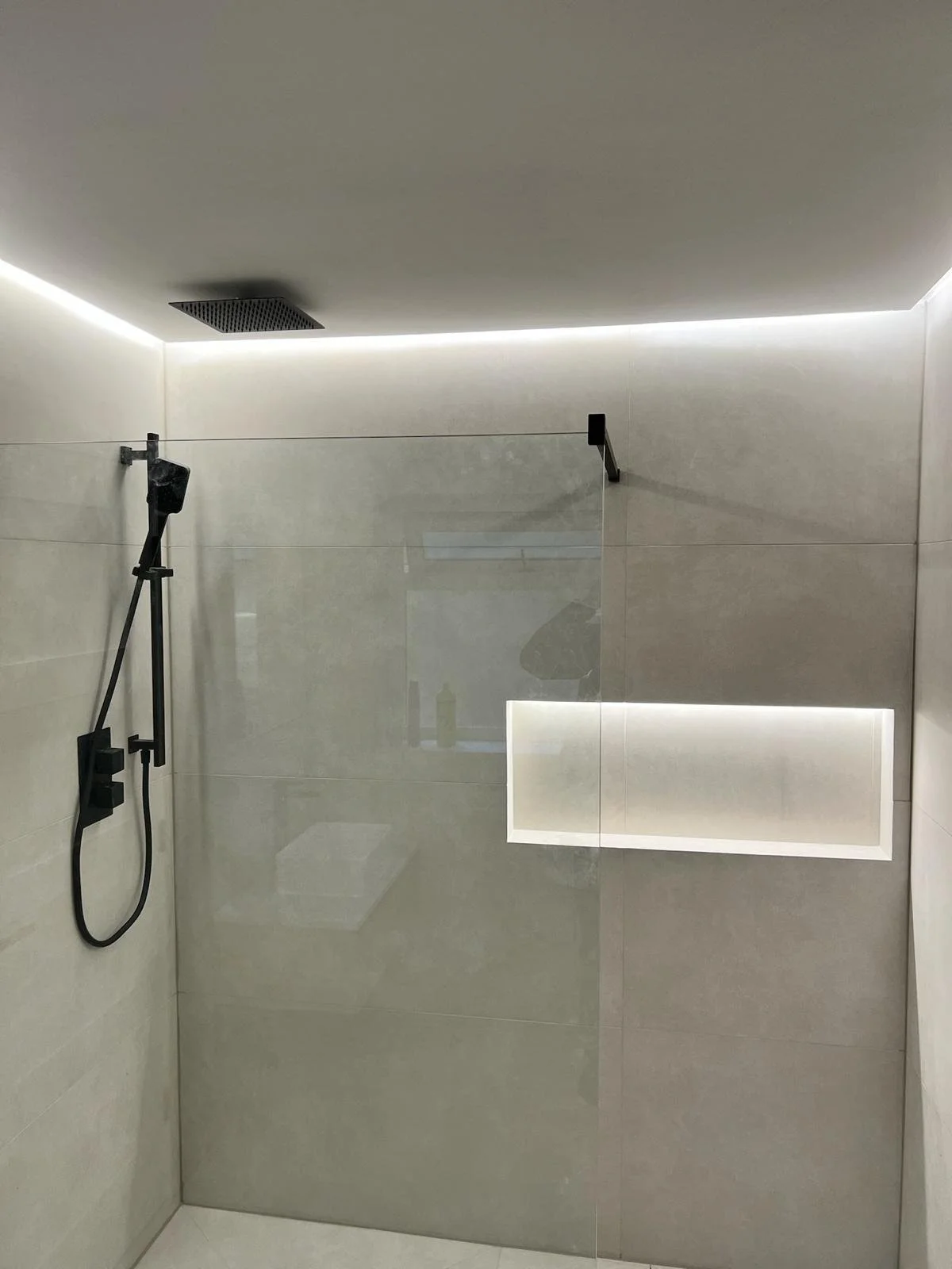 Bathroom Renovations – Two full bathrooms redesigned with walk-in showers, drop-down ceilings, vanity mirrors, and integrated lighting. Black and gold fixtures were incorporated for a bold, modern edge.